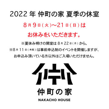 ※イベント予定は新型コロナウィルスの感染状況により、変更になる場合がございます。事前に仲町の家SNSをご確認いただいた上でご来場ください。