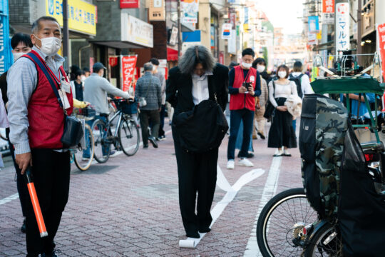 即興音楽家(笛)のKunichiro Buenoが1DAYパフォーマンス表現街で、集まるアーティスト及び、千住ほんちょう商店街に居合わせる人々との出会いから、インスパイアされる音を奏でる千住ほんちょう・人情即興 劇場
